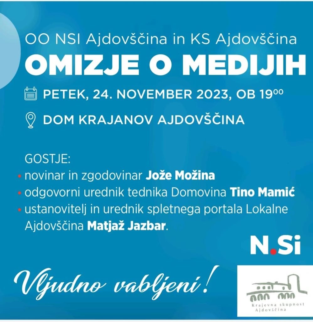 Drevi je napovedano omizje o medijih, na katerem bodo o tem govorili trije vipavski novinarji: novinar in režiser na TVS dr. Jože Možina, urednik ajdovskega portala Lokalne Ajdovščina Matjaž Jazbar in novinar in urednik tednika Domovina Tino Mamić. Vsi trije so odraščali na Vipavskem, kjer imajo še vedno tudi stalno bivališče, čeprav Možina živi največ v Ljubljani, Mamić pa v Kopru.